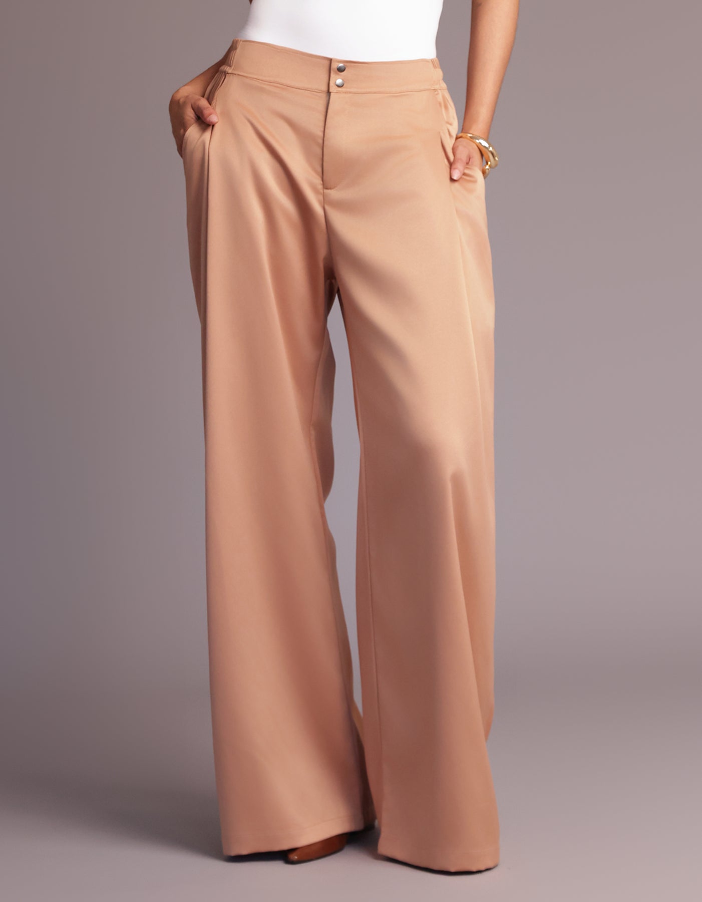 Elevate your everyday style with our Satin Pleated Wide-Leg Pants, designed for movement, versatility, and polish. Crafted from a luxurious satin fabric with a soft sheen, these pleat-front trousers offer a relaxed fit and flowy silhouette that transitions seamlessly from day to night.