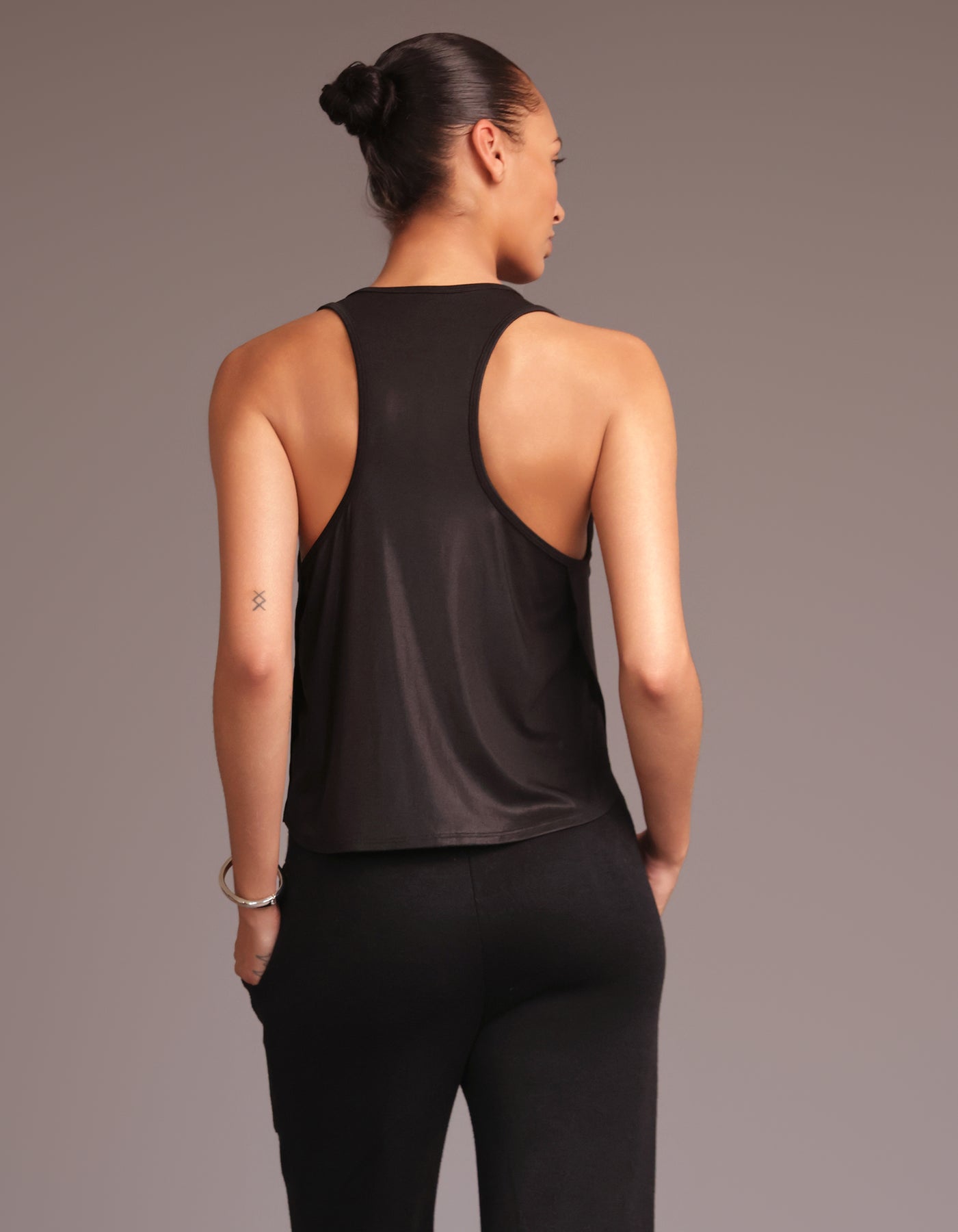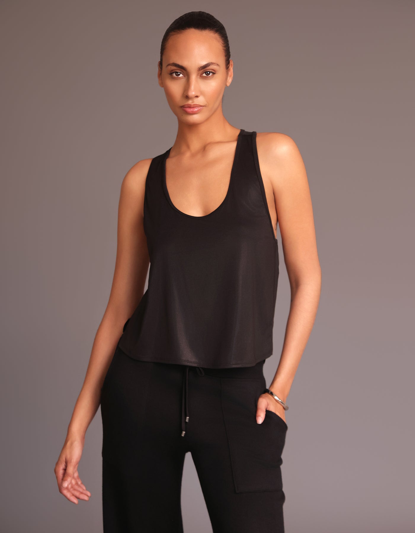 Elevate your everyday look with The Flare Tank, crafted from the lightest metallic jersey fabric that drapes like liquid mercury. This versatile piece blends sporty ease with a chic, shimmering silhouette—perfect for post-workout layering or dressing up for a night out. The relaxed fit, dropped armholes, and cropped hemline deliver an effortlessly cool vibe that moves with you from studio to street.