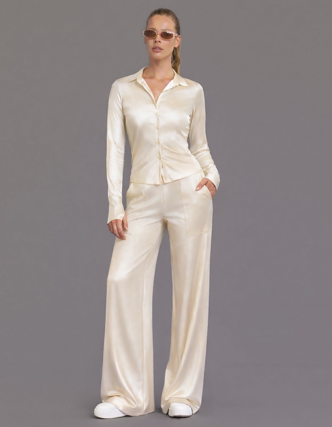 Elevate your everyday wardrobe with the Thea Performance Satin Pants, a luxurious blend of comfort, performance, and effortless style. Designed in our signature ultra-soft four-way stretch performance satin, these pants deliver a sleek, elevated look while providing the flexibility and breathability needed for modern active lifestyles.